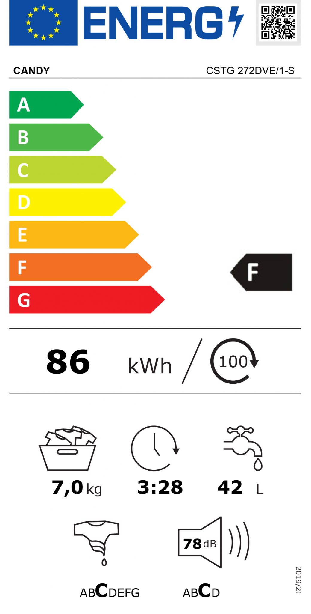 Model Candy CSTG 272DVE/1-S Tip aparata Samostojeća mašina Način punjenja Odozgo Energetska klasa A+++ Kapacitet pranja 7 kg Brzina centrifuge 1200 obrt/min Programi za pranje 3 brza programa: